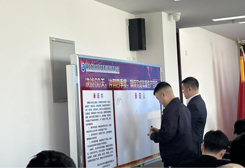 大會(huì)的尾聲,湖北水總舉行了“決戰(zhàn)60天 沖刺四季度 確保完成年度生產(chǎn)目標(biāo)”承諾書的簽名儀式,全體參會(huì)人員紛紛簽上承諾,表明打好第四季度收官戰(zhàn)的決心。